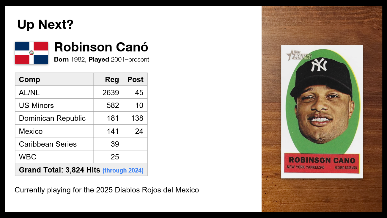 Now, just 9 months after his presentation declaring 21 members in the 4,000 Professional Hit Club, there are currently 23 members, with Luis Polonia sitting on 3,999 career hits attributed to his name so far. But that’s as of the airing of this episode, on March 11, 2026. So, depending on when you’re listening to this, even THAT might be outdated.