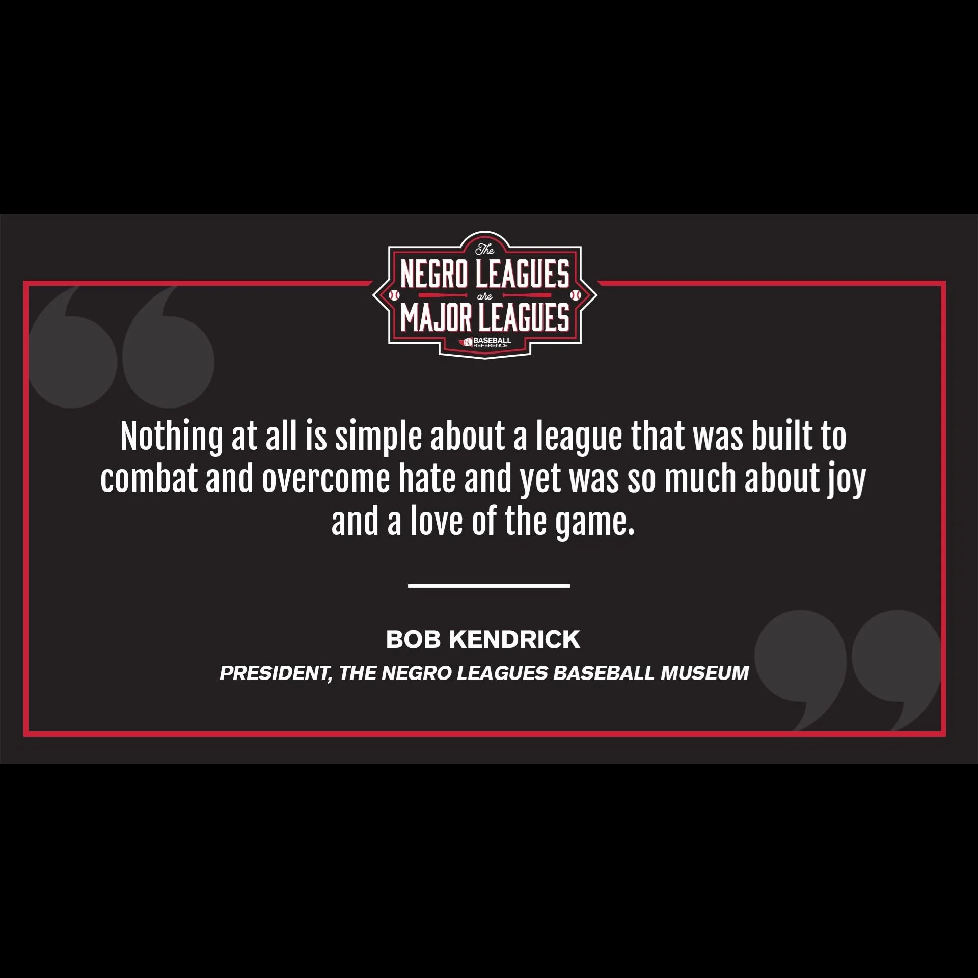 “John Labombarda, Head of the Editorial Department at the Elias Sports Bureau, the Official Statistician of Major League Baseball, said: “The Elias Sports Bureau supports Major League Baseball in its conferral of Major League status on the Negro Leagues. We look forward to working with John Thorn and the people who worked on the research and construction of the Seamheads Negro Leagues Database.”